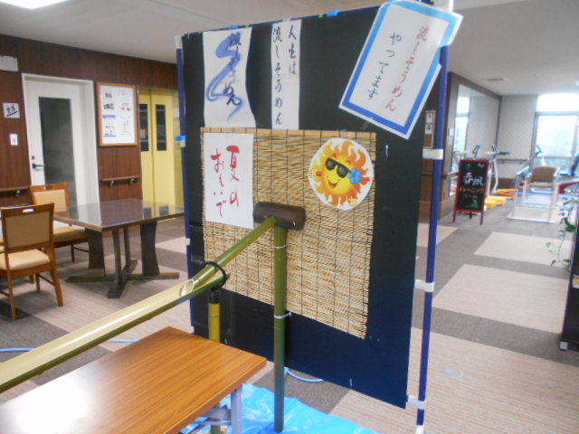 皆様こんにちは 春風では7月23日に、夏の物詩「流しそうめん」を開催しました。 流れてくるそうめんを上手くキャッチ出来るかな 皆さまとても楽しみながら、たくさん召し上がられていました。 まだまだ暑い日が続きますが、皆様ご自愛くださいませ。 -